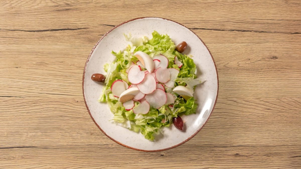 маруля, краставица, пресен лук, репички, яйце, маслини, 350г