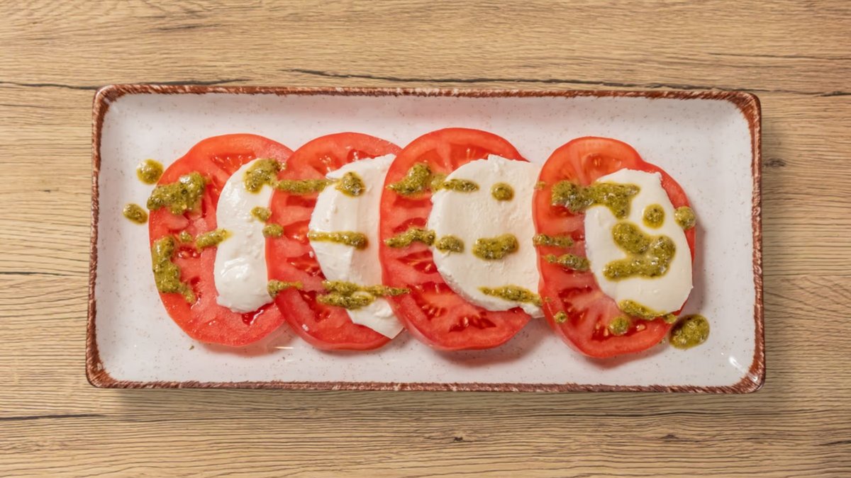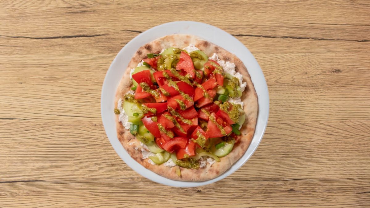 хлебче на пещ, катък с печени чушки, домати, краставици, пресни чушки, пресен лук, сос песто, 550г