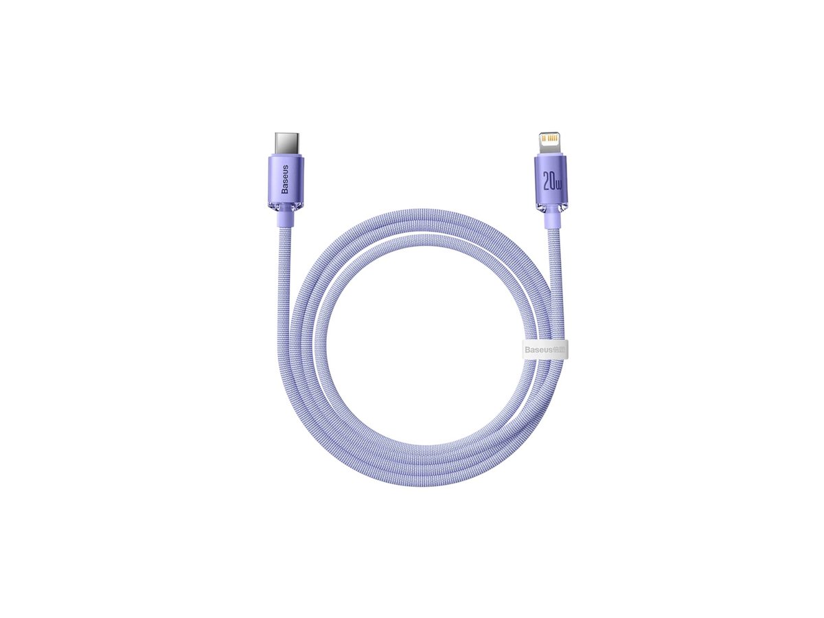 Кабел Baseus Crystal Shine Series USB-C към Lightning 20W 1.2м - Лилав