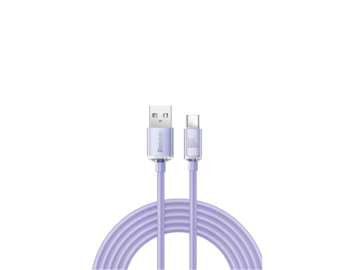 Кабел Baseus Crystal Shine Series USB към USB-C 100W 2м - Лилав