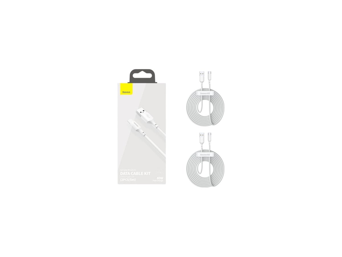 Кабел Baseus Simple Wisdom USB към USB-C 40W 1.5м (2 броя) - Бял