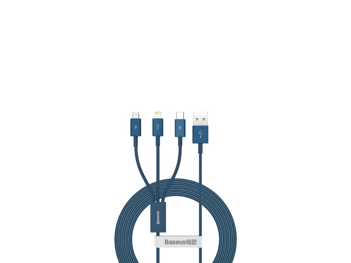 Кабел Baseus USB към Lightning, MicroUSB и USB-C Superior 3в1 3.5 A, 1.5 м - Син