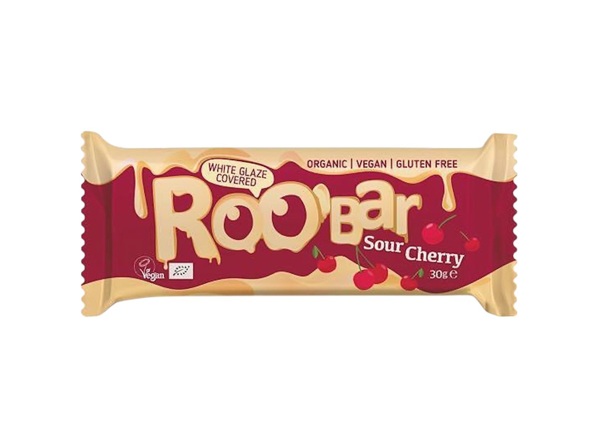 Roobar бар с вишни, покрит с бял шоколад 30g
