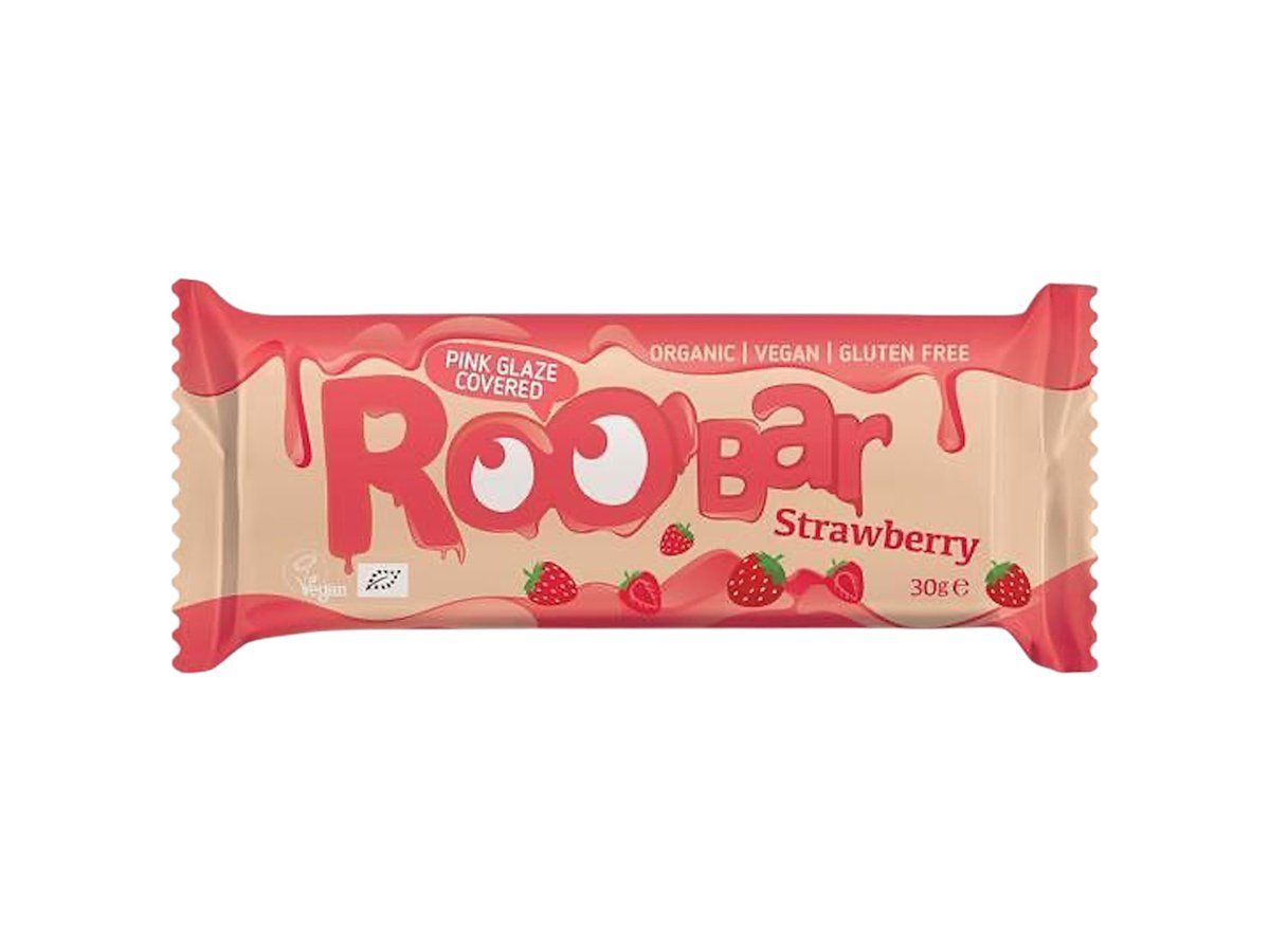Roobar бар с ягоди покрит с розова глазура 30g