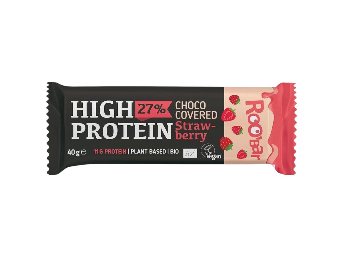 Високопротеинов бар Ягода покрит с розов тунк 40g Roobar