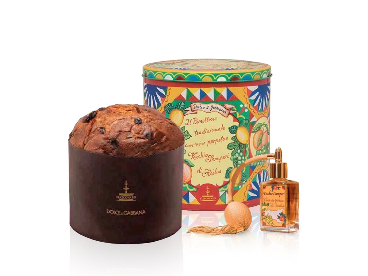 127,31 € (249,00 лв.)Италианско панетоне със захаросан портокал и стафиди със сицилианско десертно вино Vecchio Samperi - Fiasconaro и Dolce & Gabbana - 1 кг.