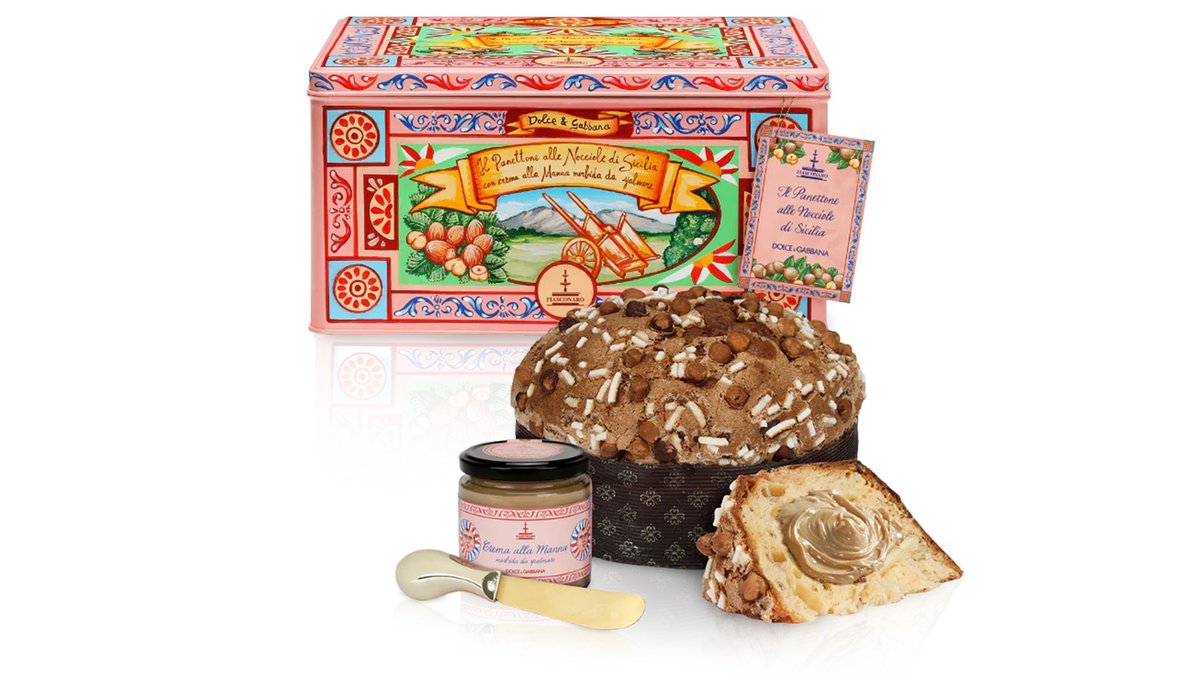 111,97 € (218,99 лв.)Италианско панетоне със сицилиански лешник и бурканче малинов крем - Fiasconaro и Dolce & Gabbana - 1 кг.