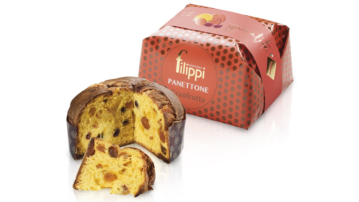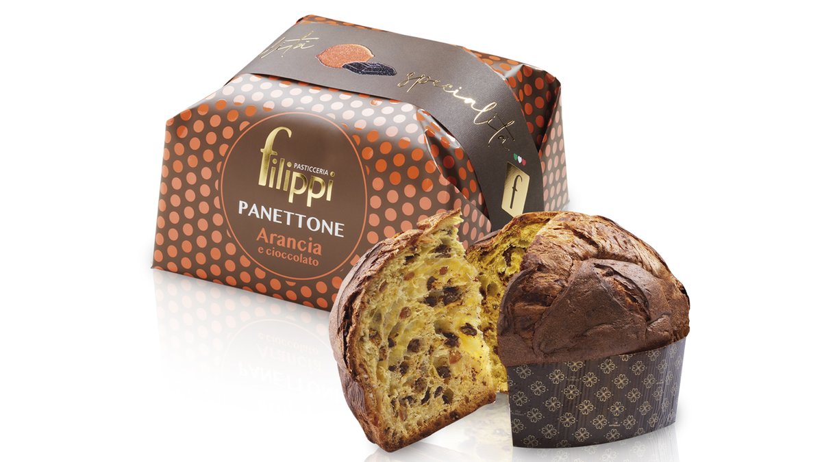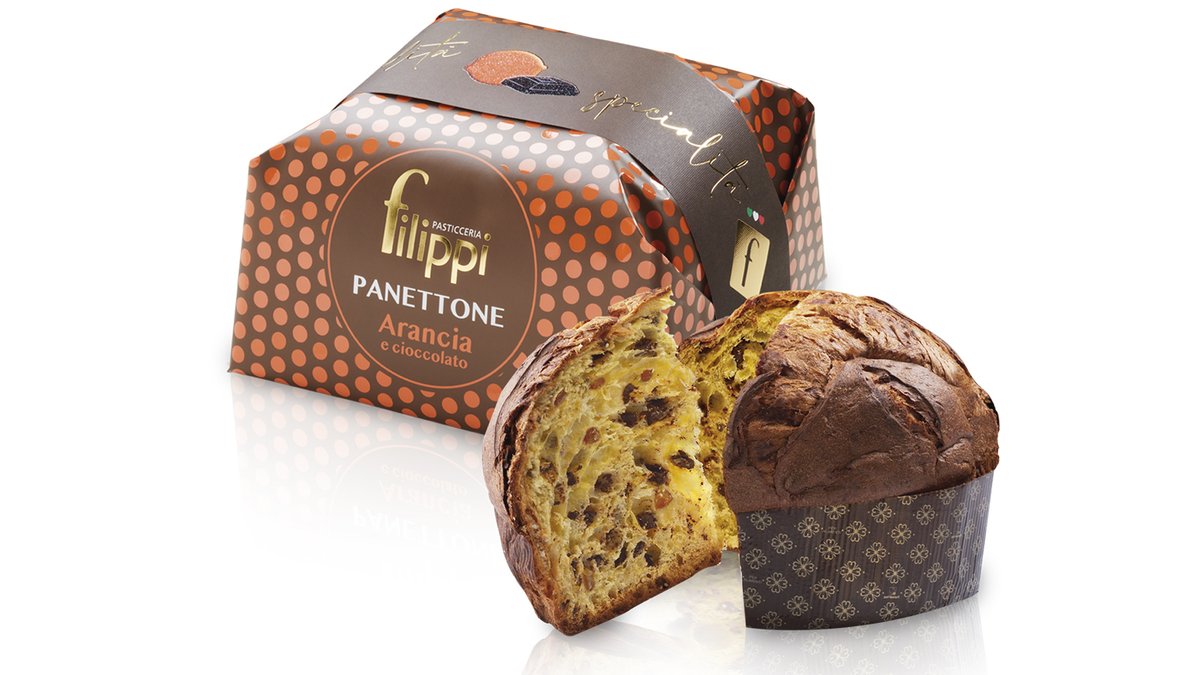45,50 € (88,99 лв.)Италианско панетоне с шоколад и кандирани портокалови кори – Filippi – 1 кг.