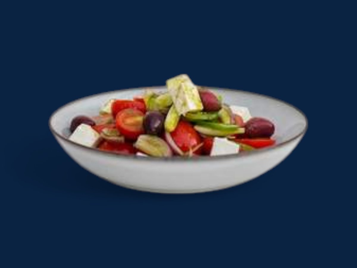 чери домати, краставици, пипер, червен лук, фета сирене маслини 300г