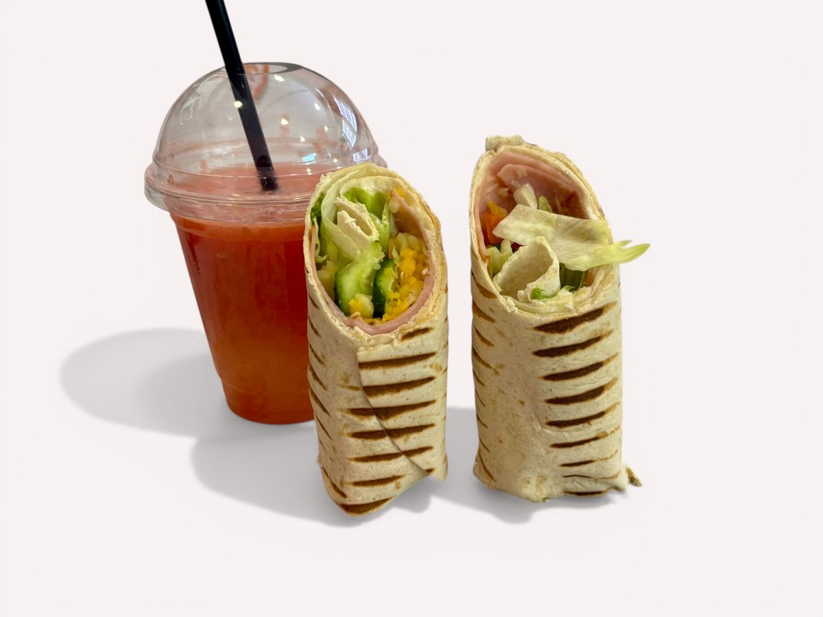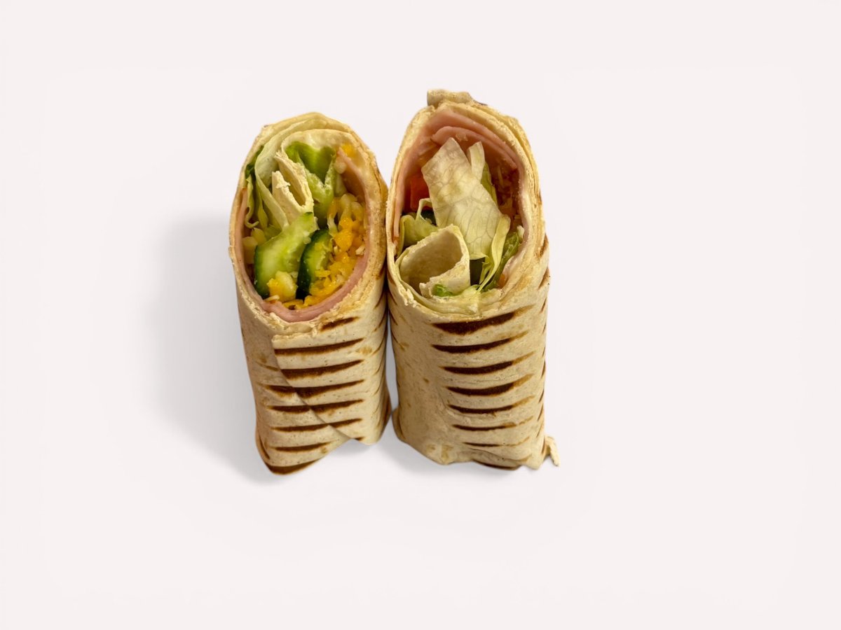 тортила питка, майонезен сос, шинка, микс чедър и моцарела, домати, краставици и айсберг 250г
