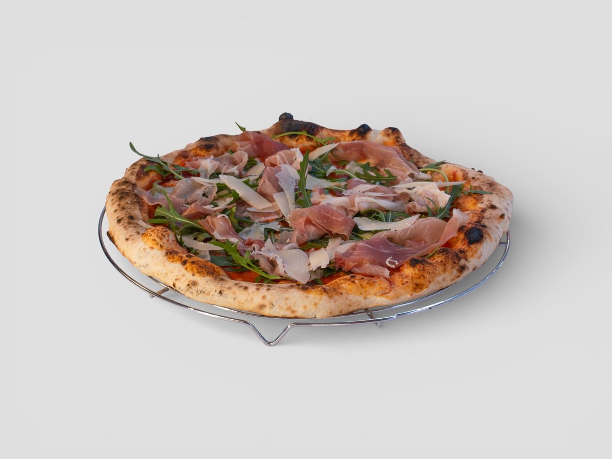 доматен сос Сан Марцано, моцарела Фиор ди латe, прошуто Крудо, рукола, пармезан 500г
