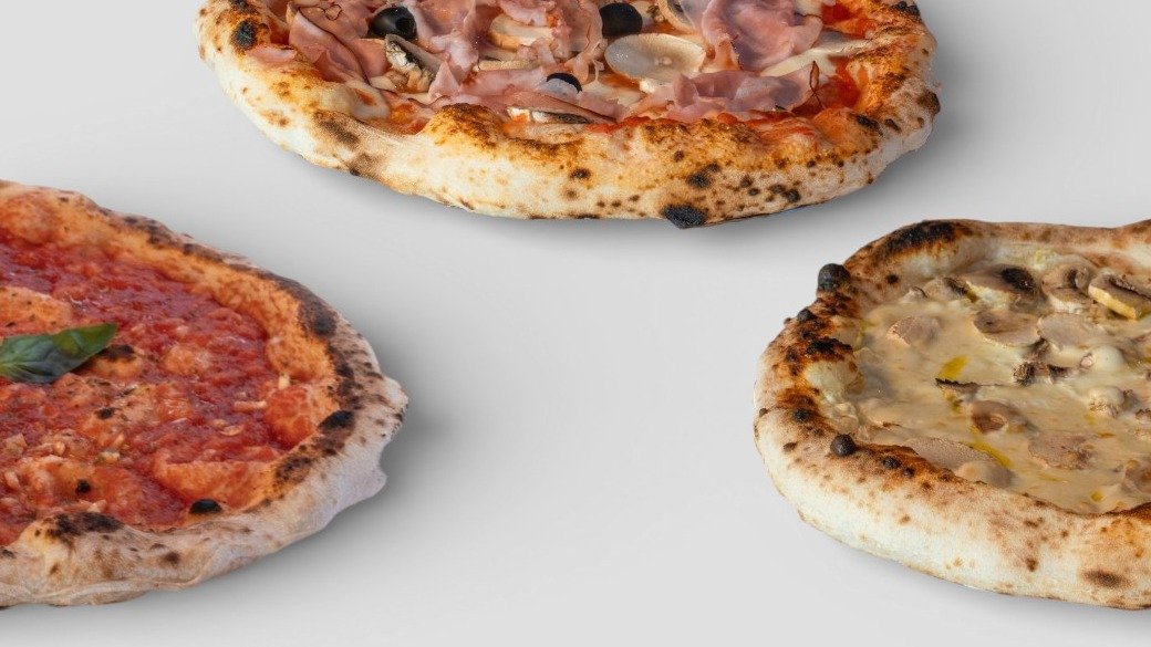 доматен сос Сан Марцано, моцарела Фиор ди латe, прошуто Кото, гъби, черни маслини 550г