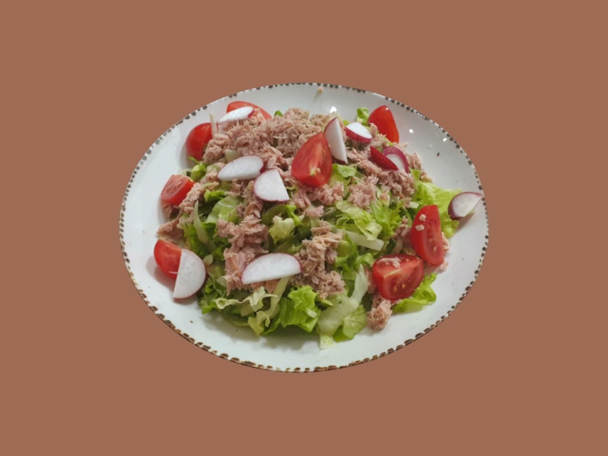Зелена салата с риба тон и чери домати.