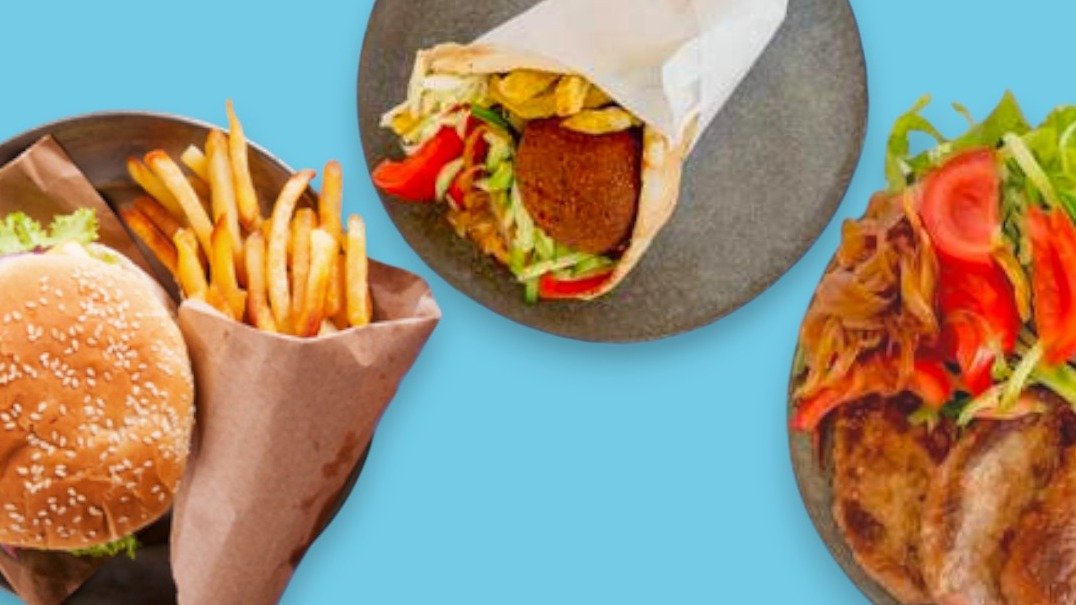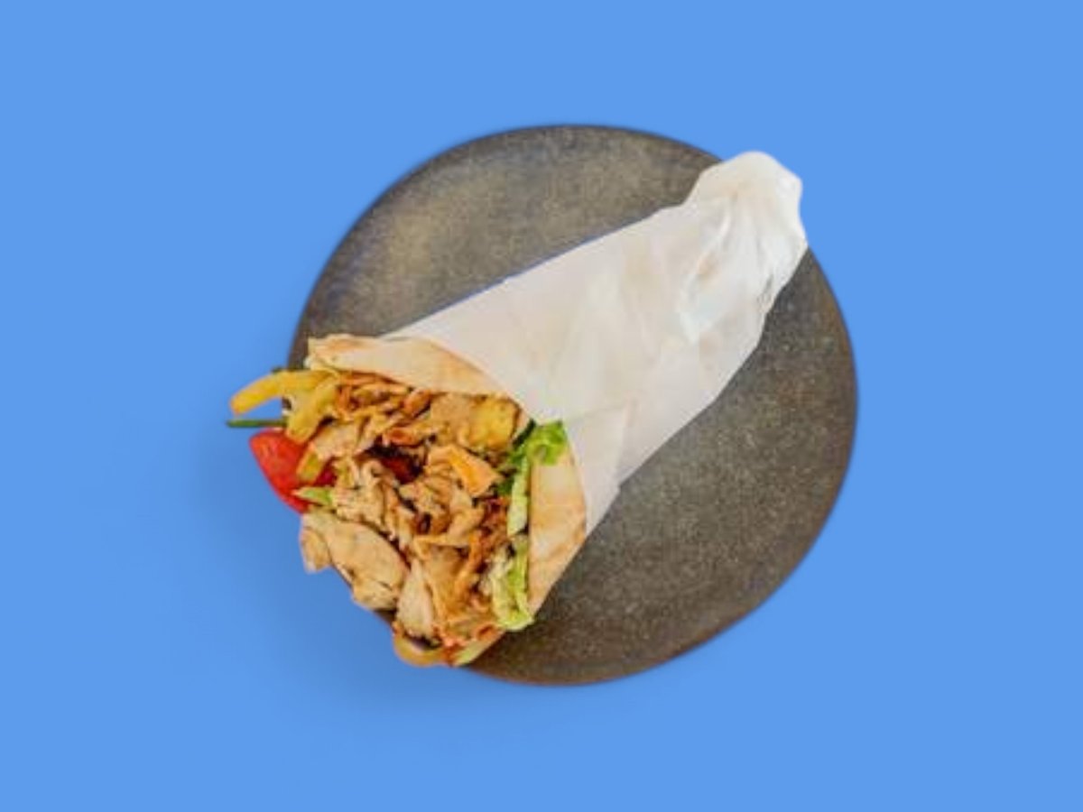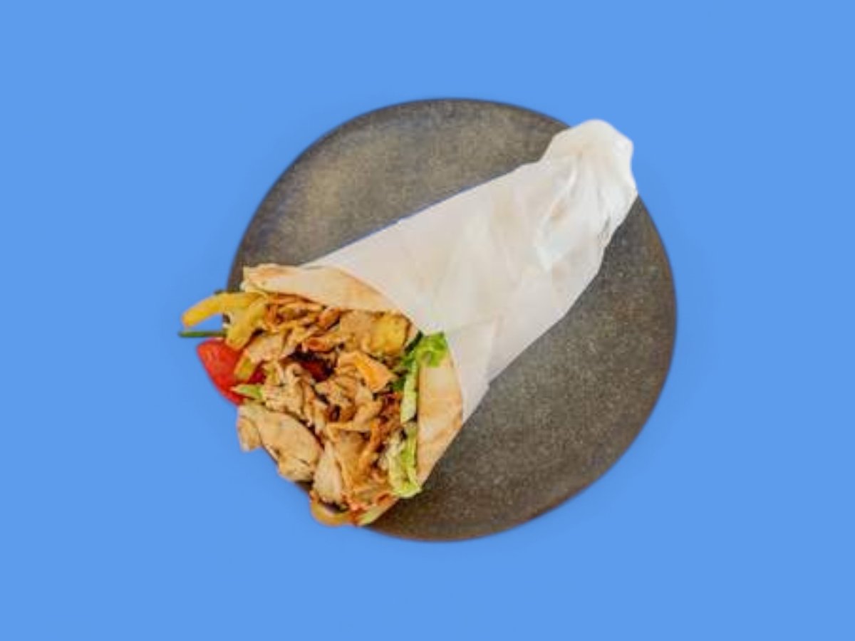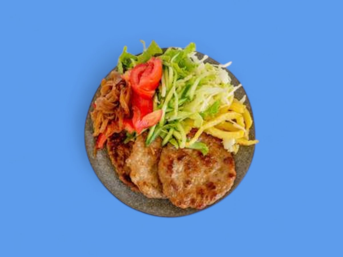 голяма порция по избор с пилешко телешко или фалафел, плюс гарнитура зеле, зелена салата, краставици, домати, печен лук 650г