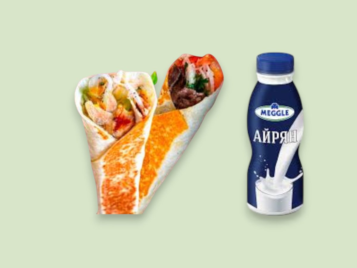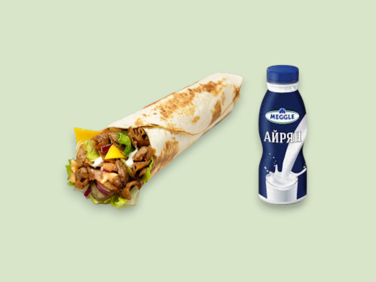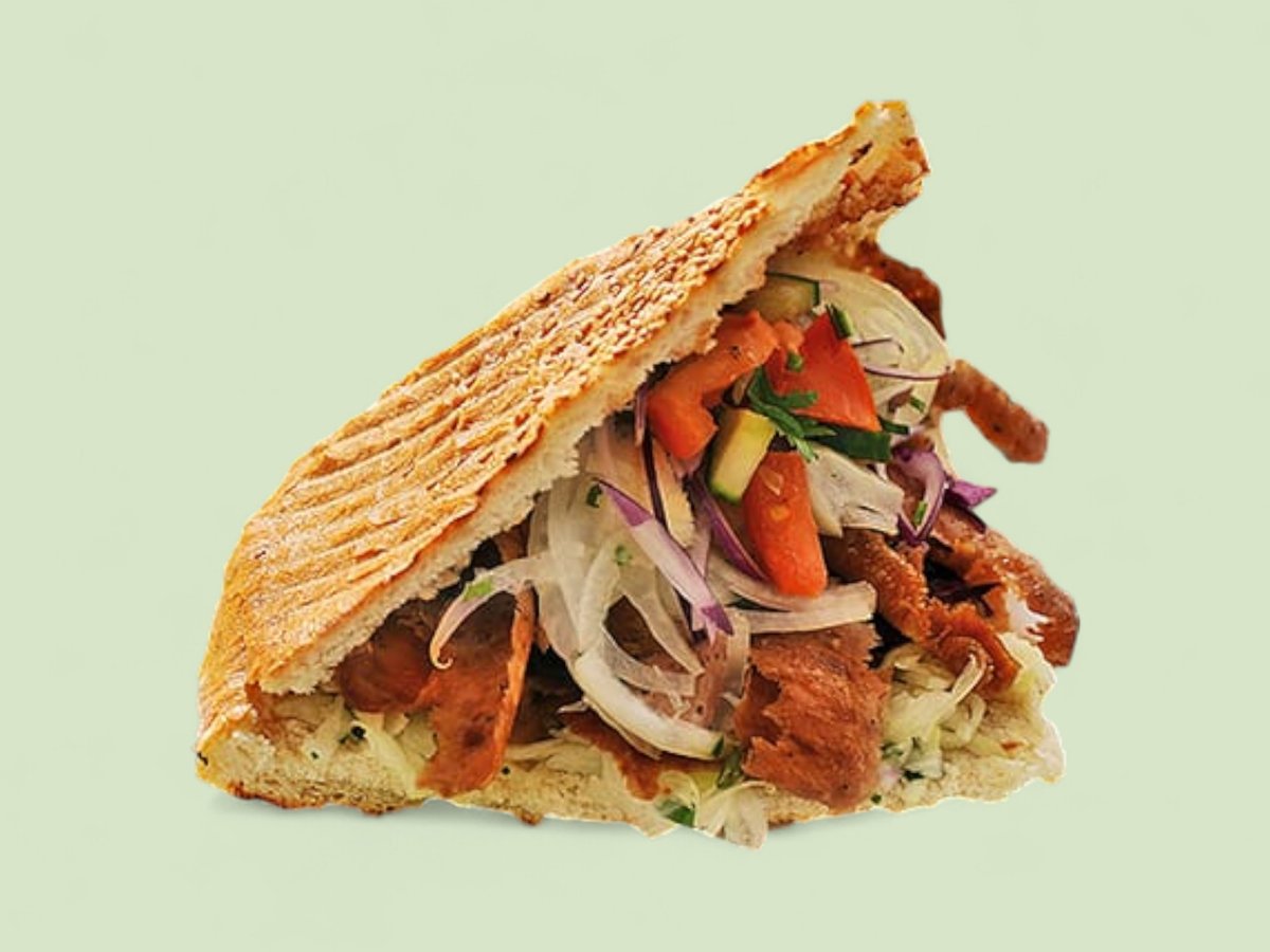 телешко месо, пържени картофи, зеле,зелена салата, домати, краставици, пресен и печен лук, кисели краставици, арабска питка,чеснов сос 700г