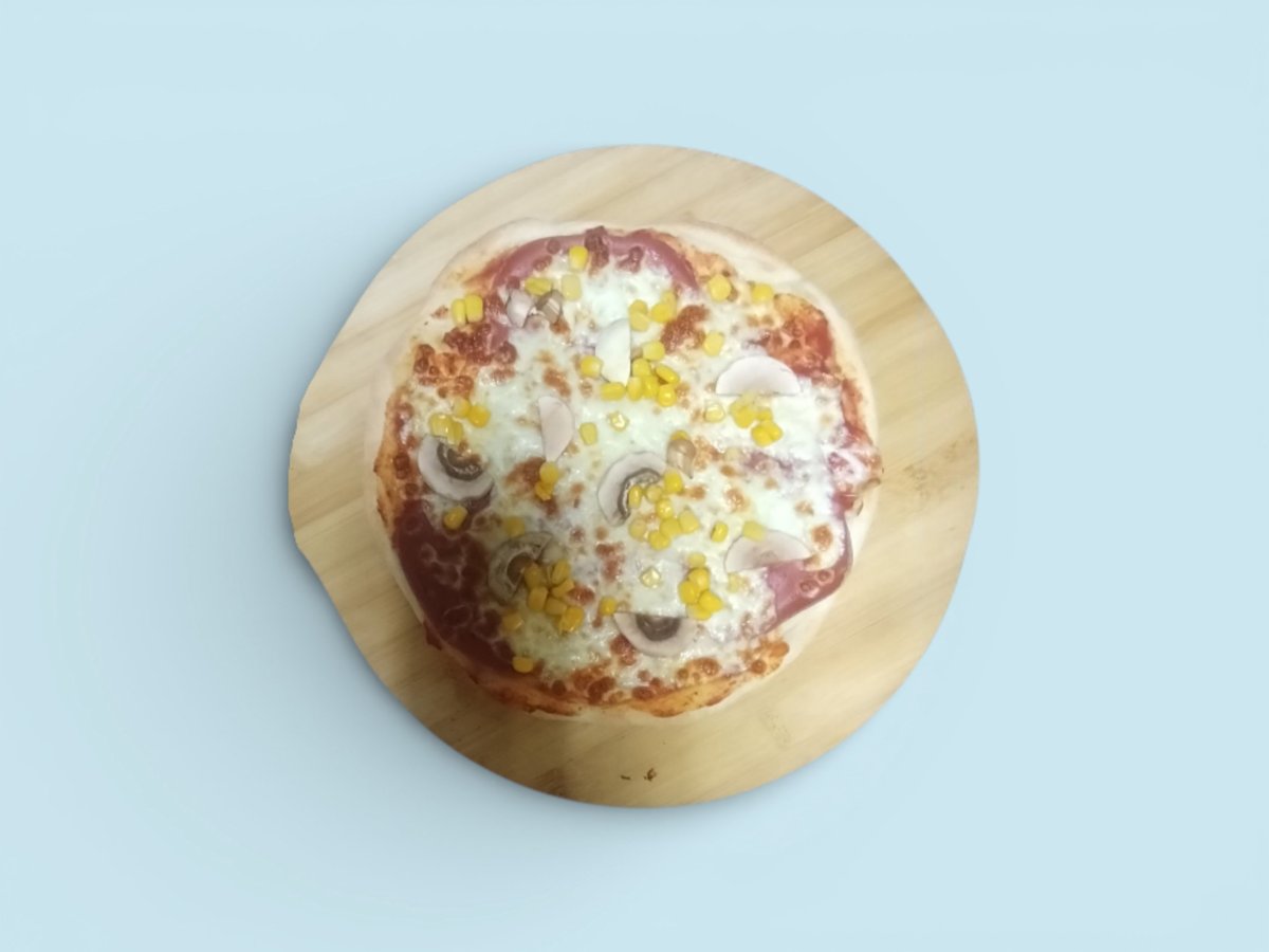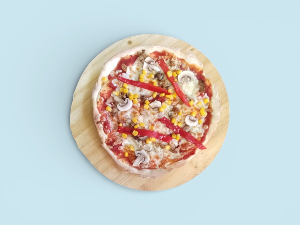 Дърпано пилешко, гъби, царевица, пресен пипер, моцарела