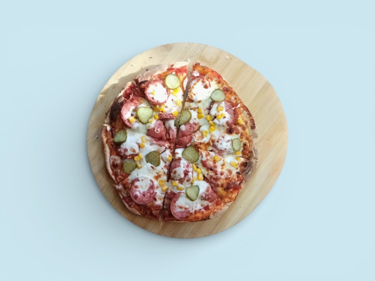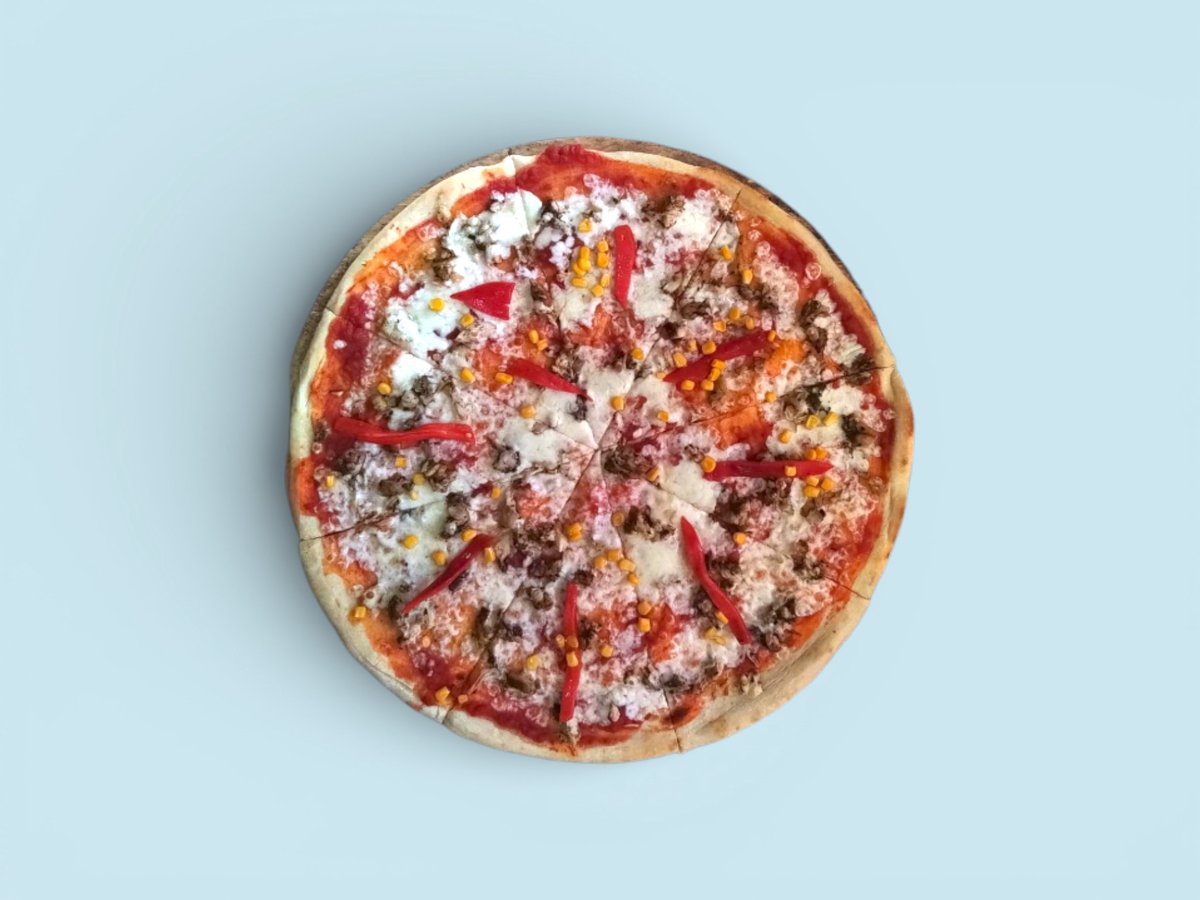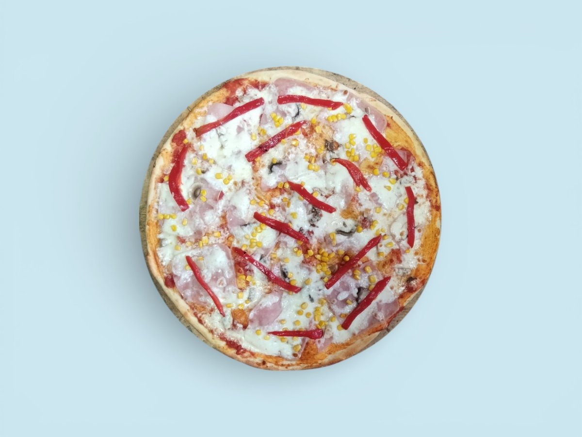 Бекон, люта чушка, царевица, топено сирене, пресен пипер, моцарела
