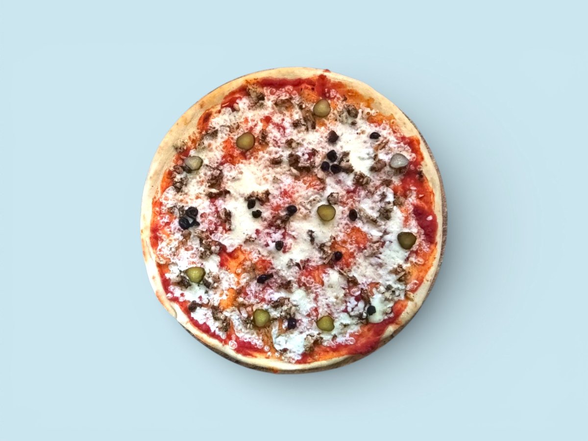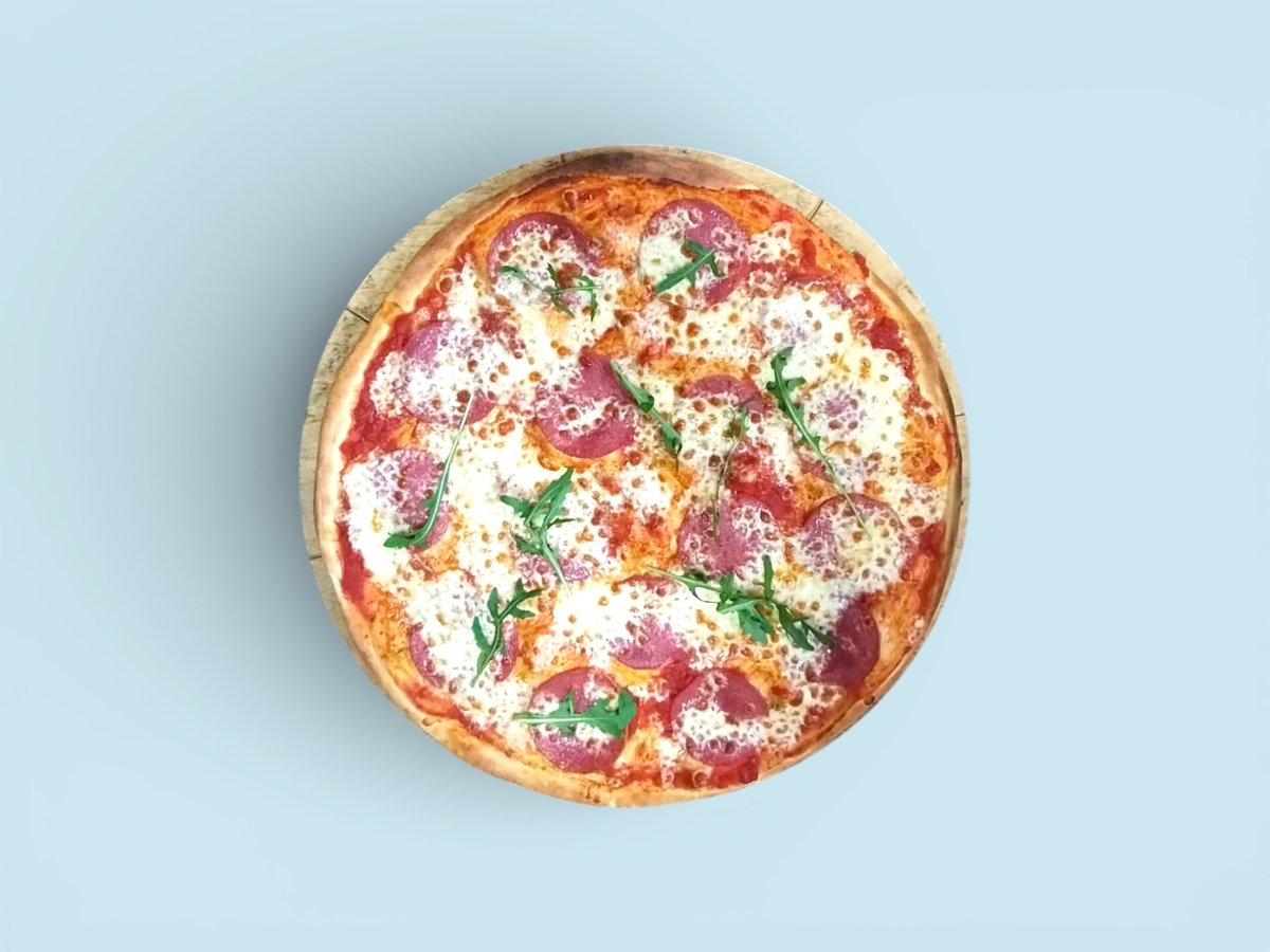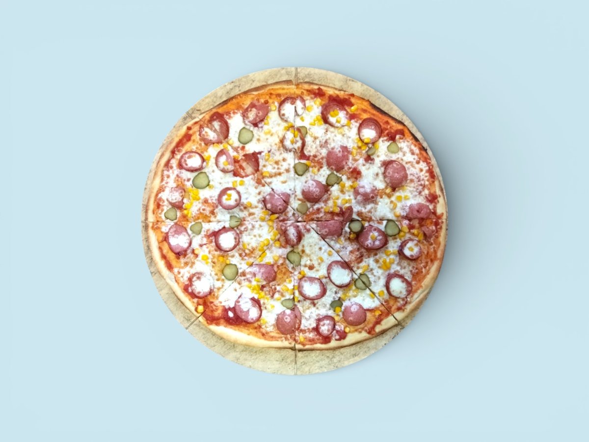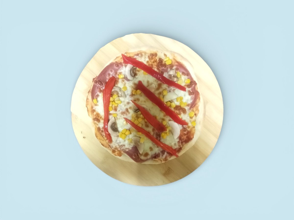 Бекон, люта чушка, царевица, топено сирене, пресен пипер, моцарела