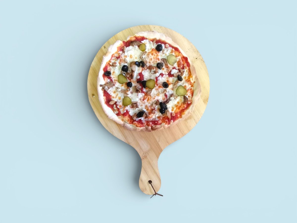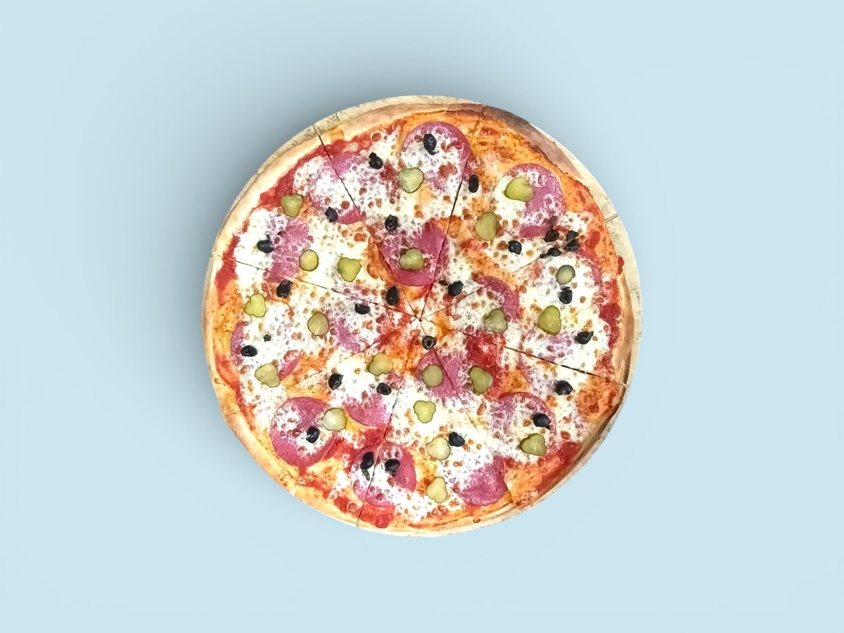 Луканков салам, шунка, топено сирене, маслини, кисели краставички, моцарела
