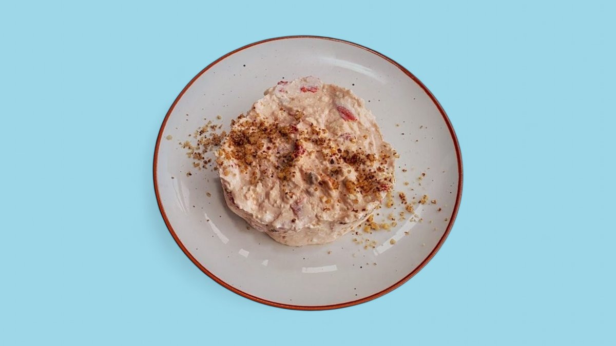 печен пипер, цедено кисело мляко, краве сирене, крема сирене, риган, копър, чесън, сусам