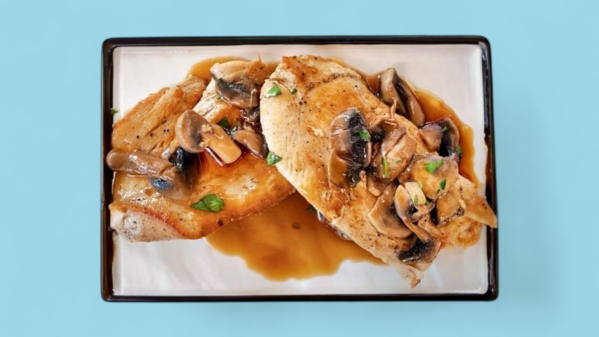 свинско месо, гъби, сос