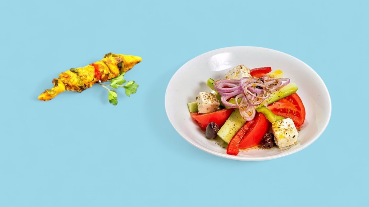 1бр Пилешки шиш + 150г Гръцка салата