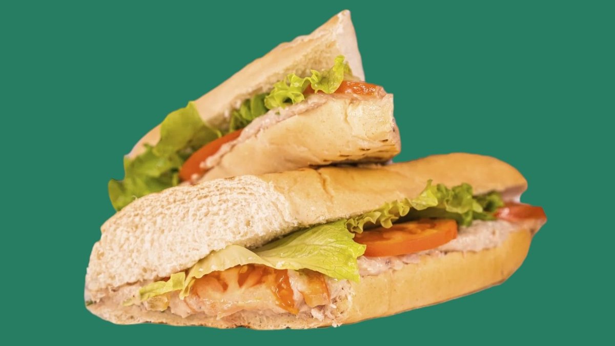 сандвич в хрупкаво хлебче със салата Риба тон, домати и зелена салата