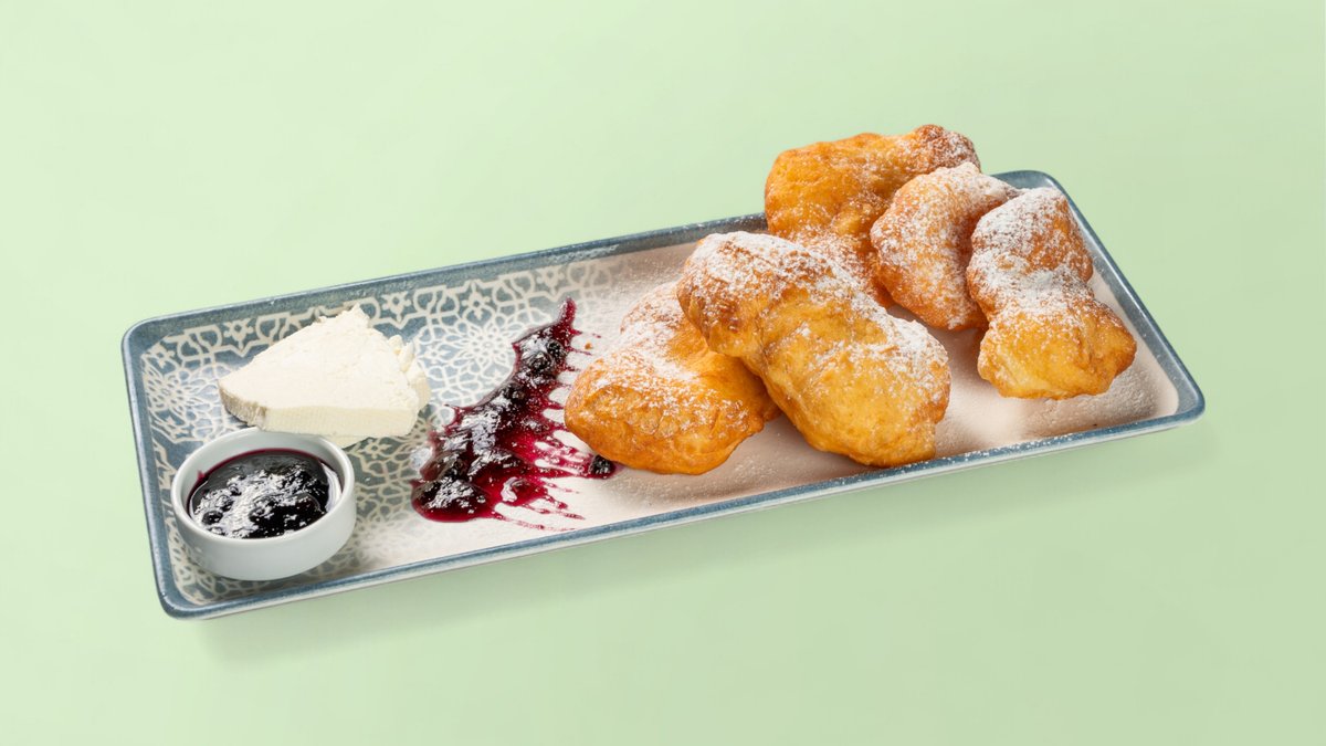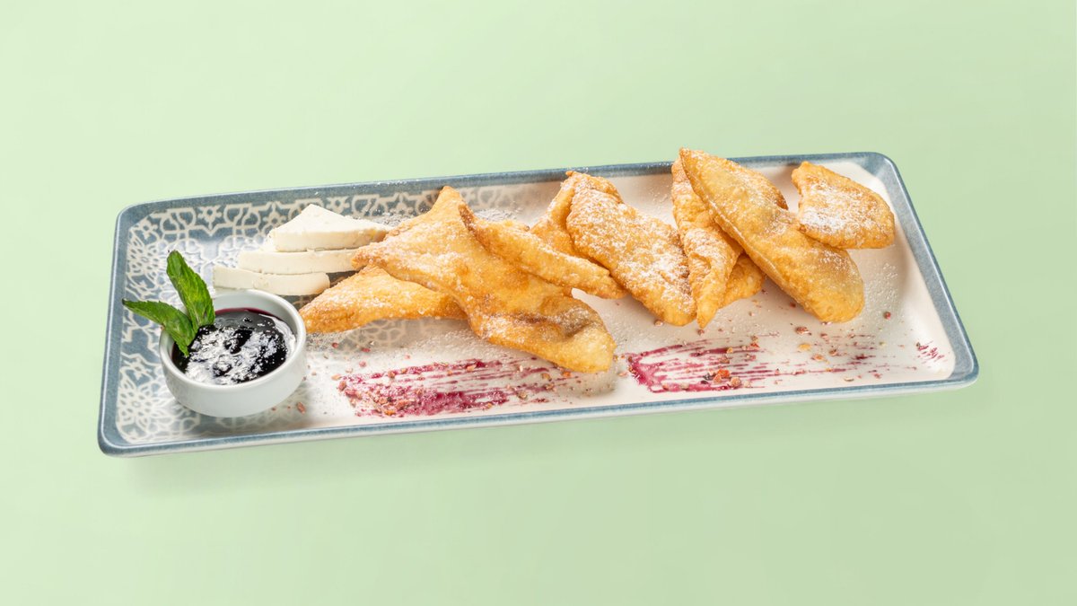 350г - бял хляб крема сирене, яйца, масло, хумус, краставици, домати, зелен лук, чили олио, хрупкав Еленски бут