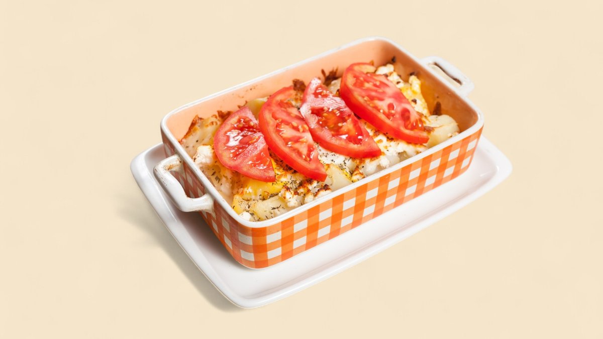 картофи, сметана, чубрица, запечено яйце, пресни домати, сирене, кашкавал 450г