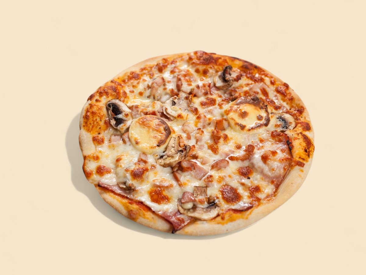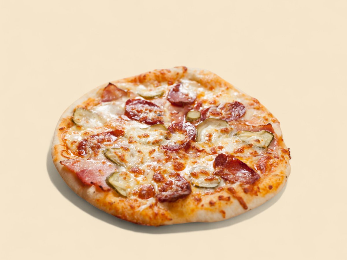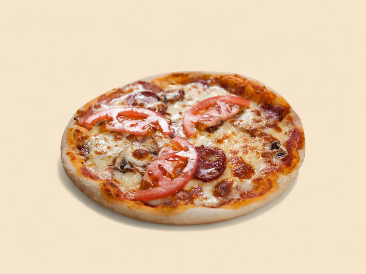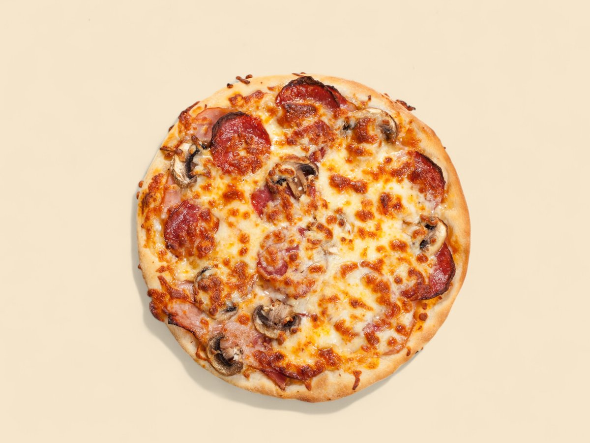 доматен сос, шпек салам, бекон, шунка, пресни гъби, кашкавал