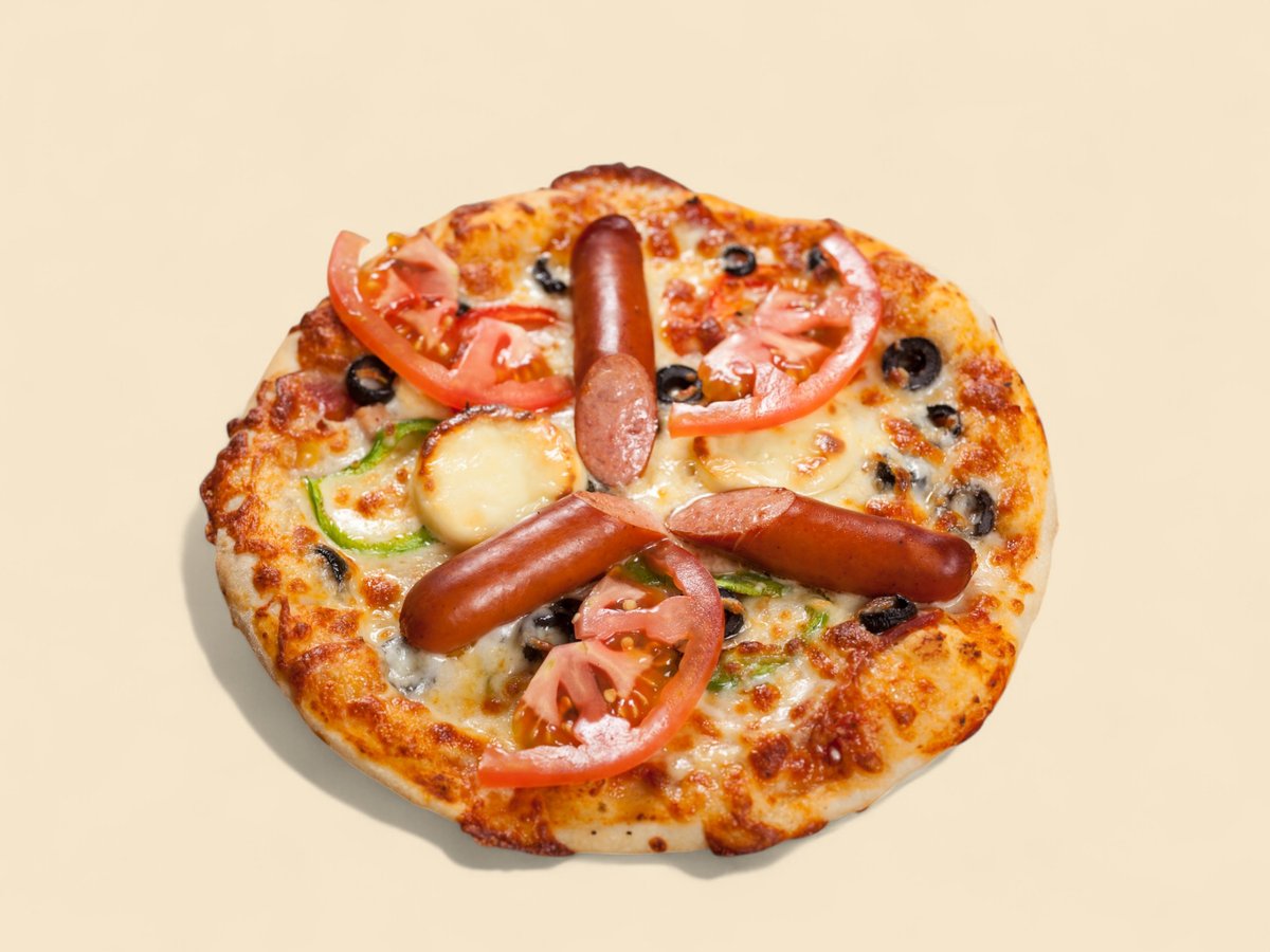 доматен сос, маслини, шунка, луканка, топено сирене, пресни домати, кашкавал