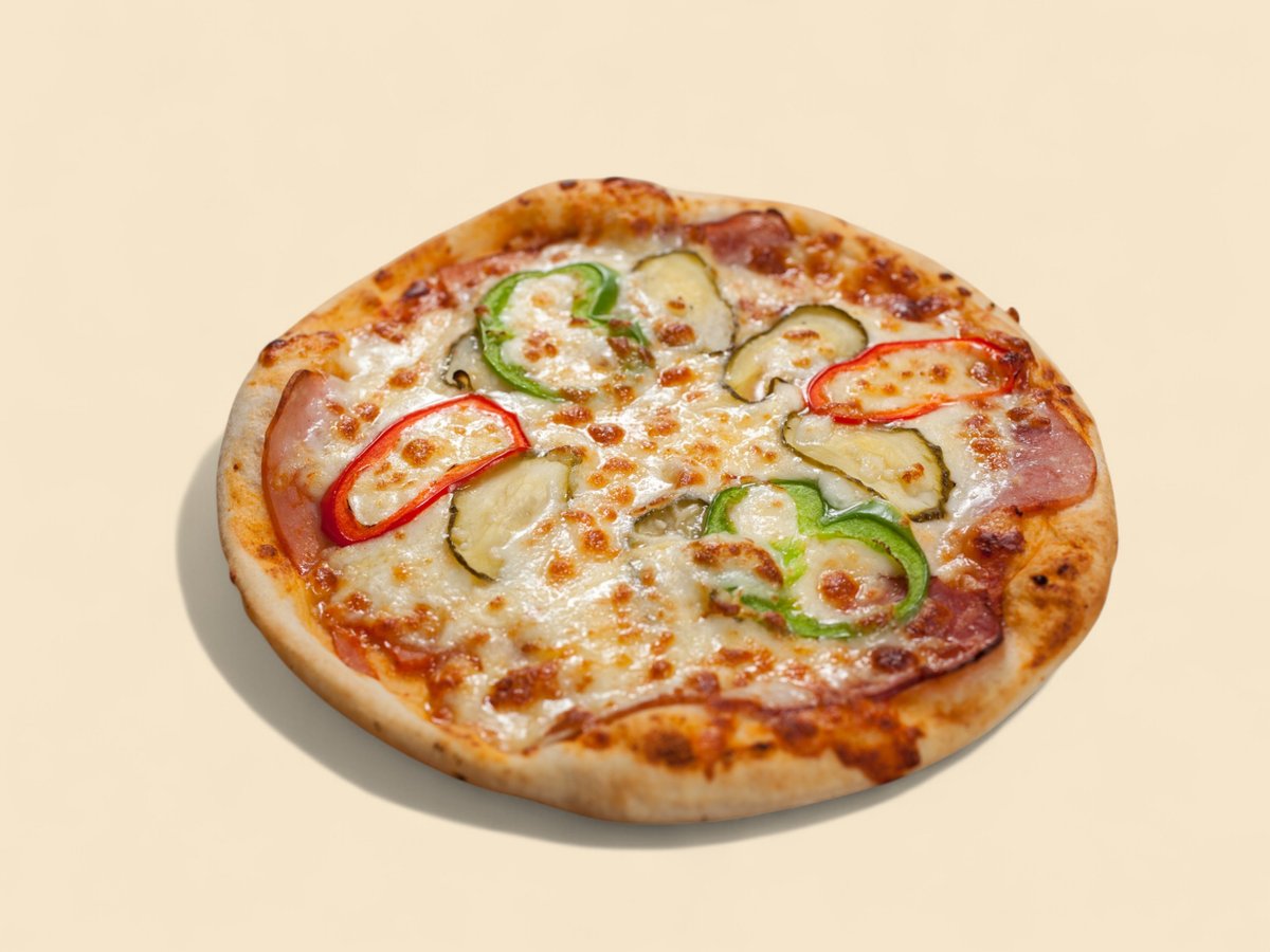 доматен сос, гъби, зелен и червен пипер, тиквичка, чесън, пармезан, 500г