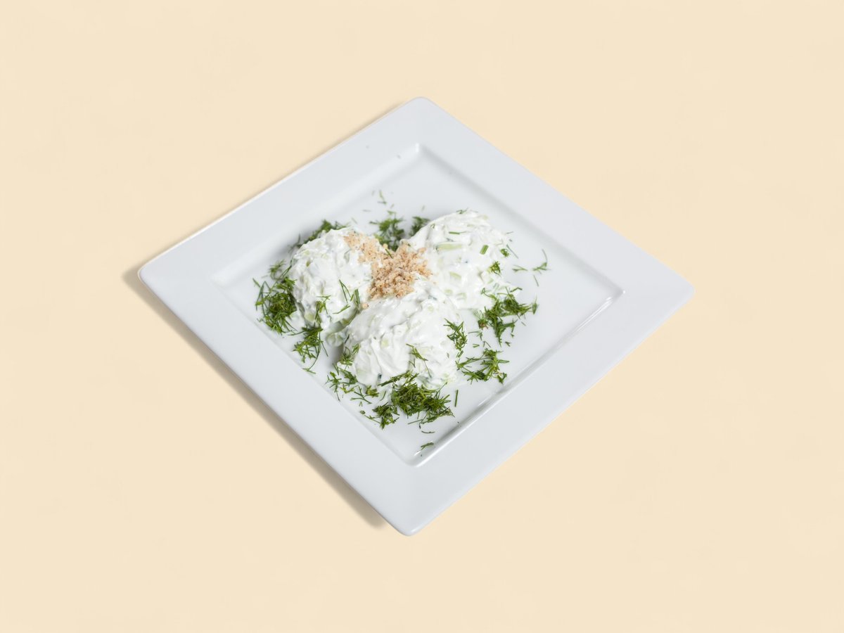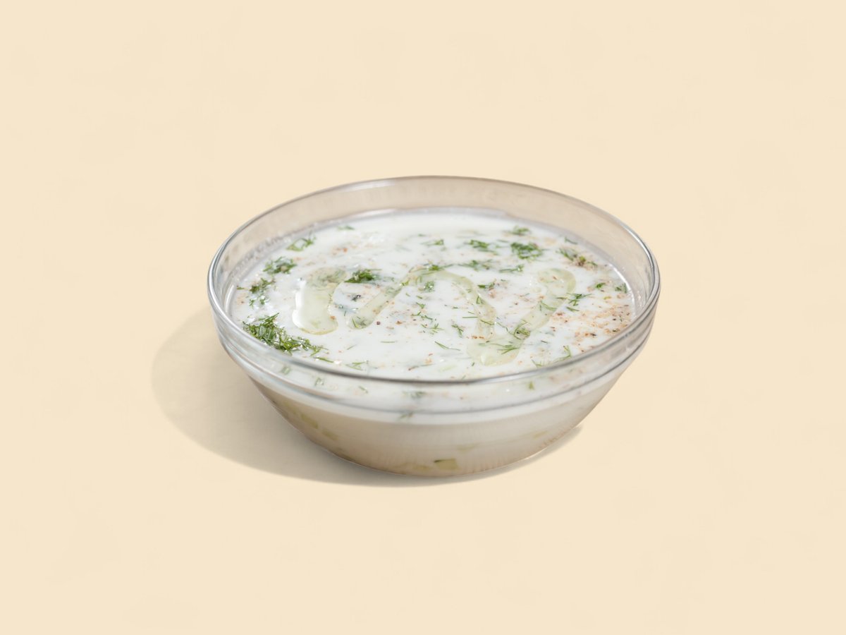 кисело мляко, краставици, чесън, орехи и копър 350г