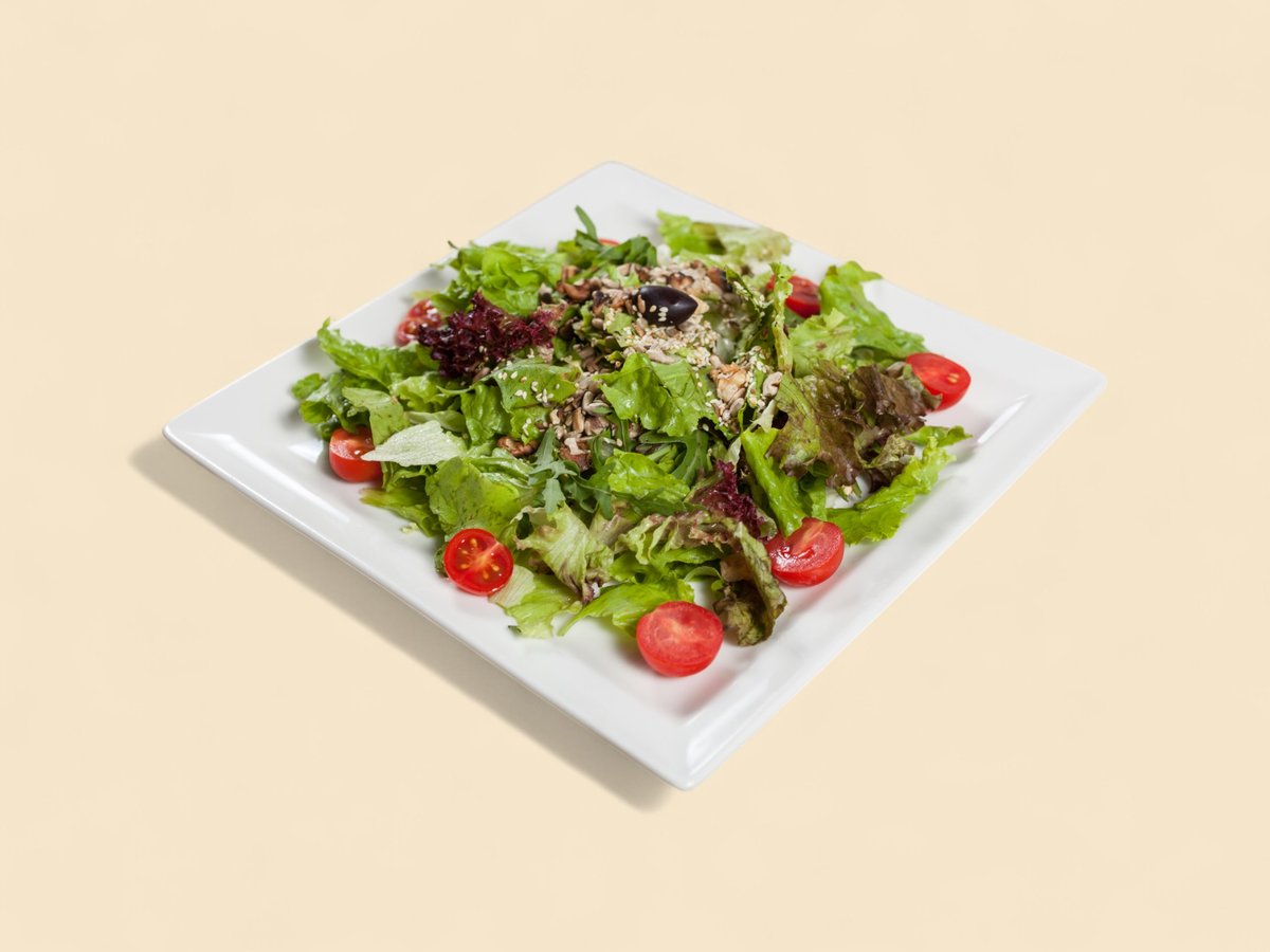 микс зелена салата, рукола, каперси, пилешки бон филенца, чери домати, авокадо, моцарела, запечена шунка, червен лук, дресинг 300г