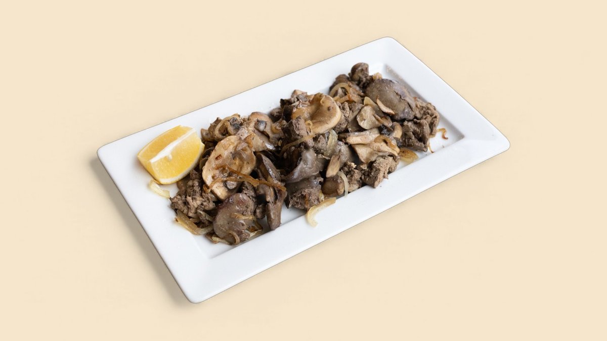 Пилешки дробчета с лук и гъби