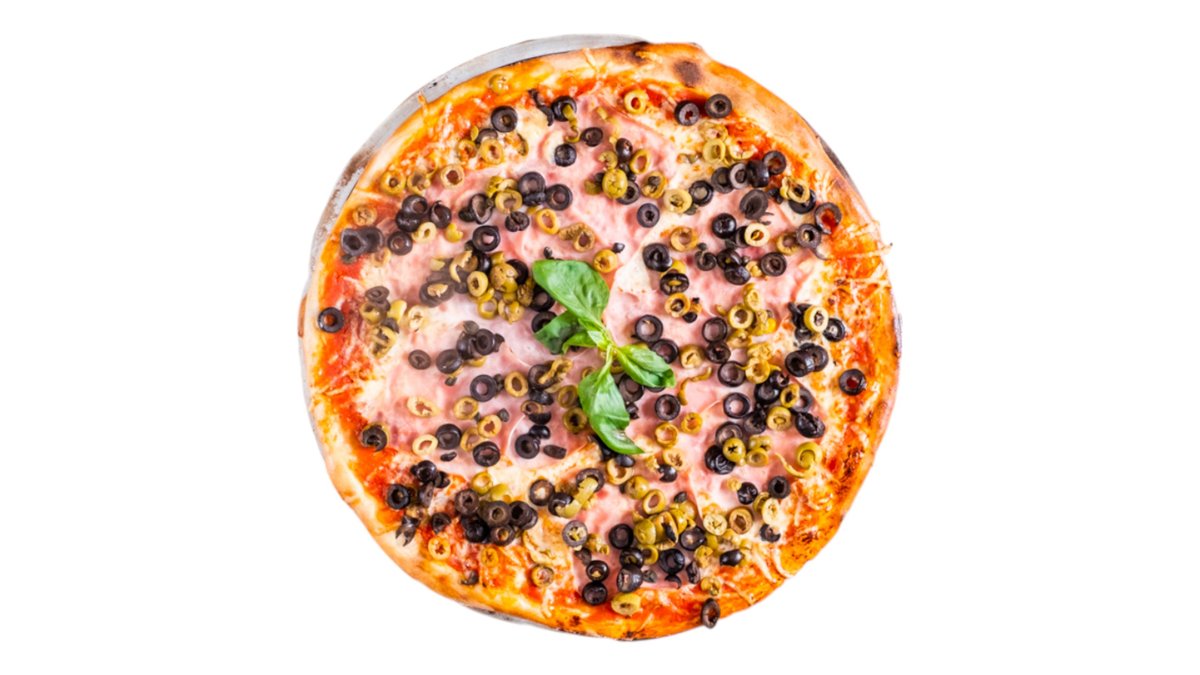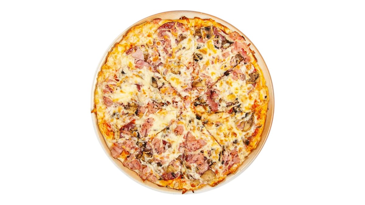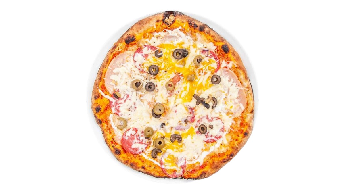 Tomato, mozzarella, šunka, žampioy, olivy