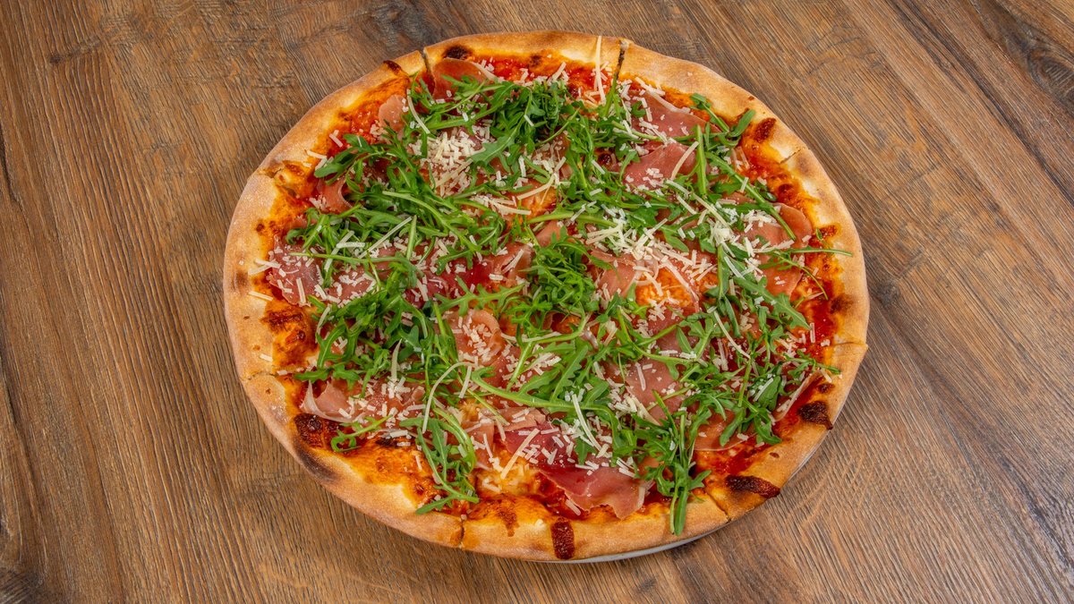 pomodoro, mozzarella, parmská šunka, rukola, parmazán