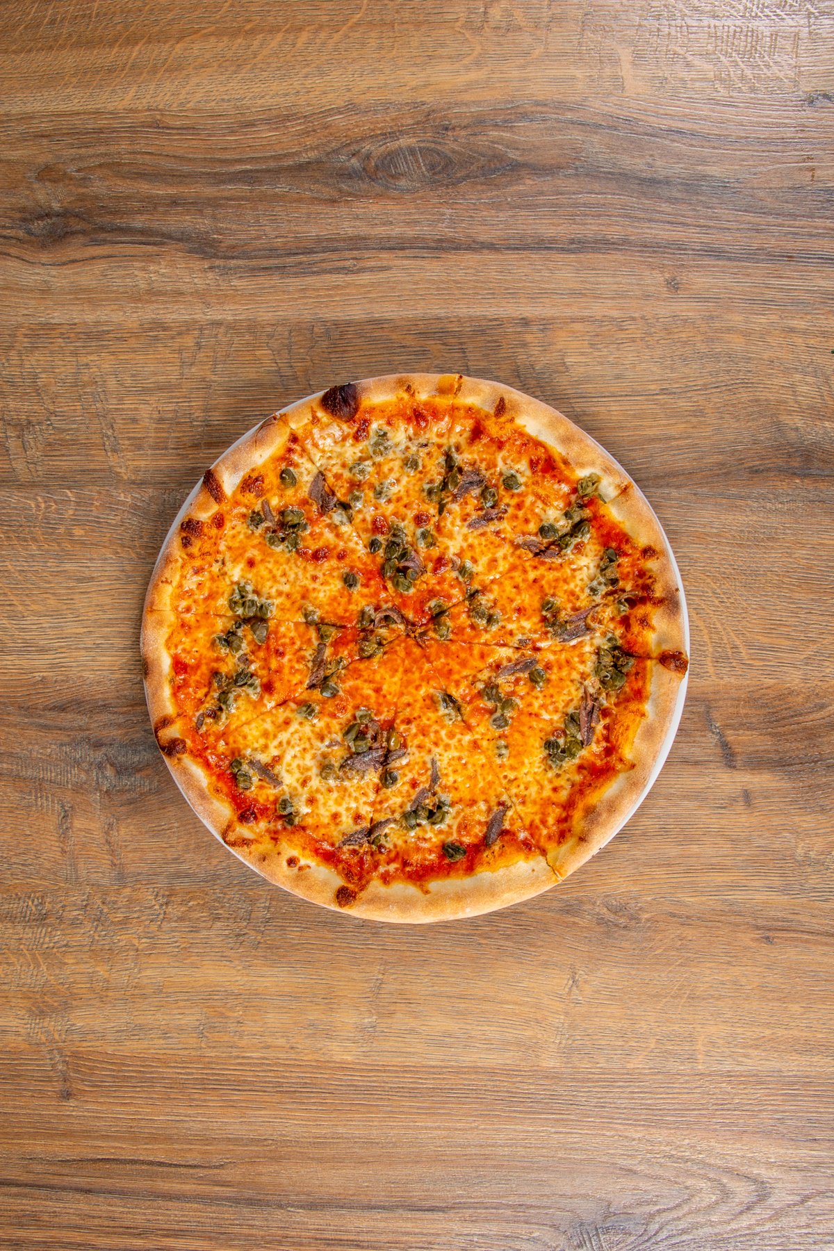 pomodoro, mozzarella, ančovičky, kapary, oregano, olivový olej