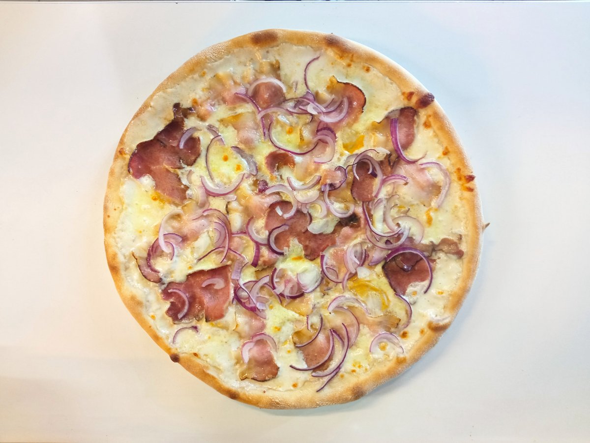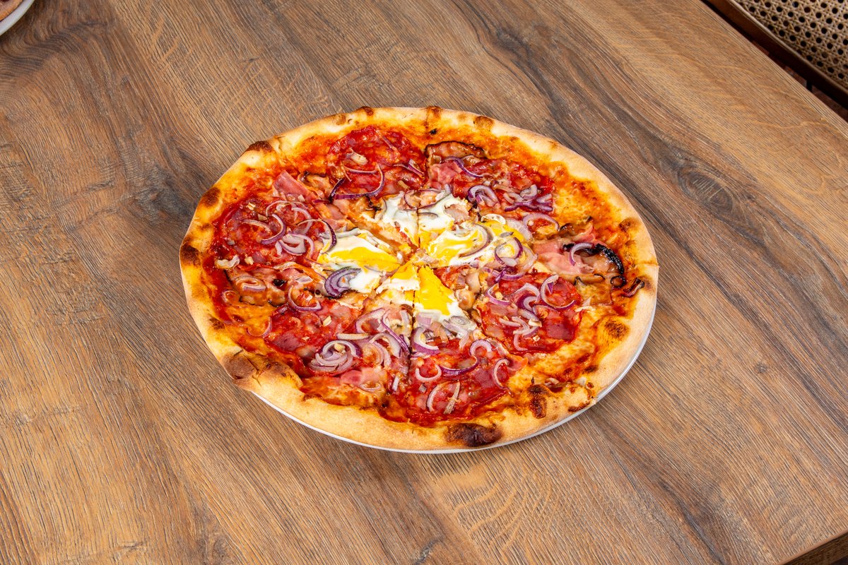 pomodoro, mozzarella, herkules, slanina, vejce, cibule