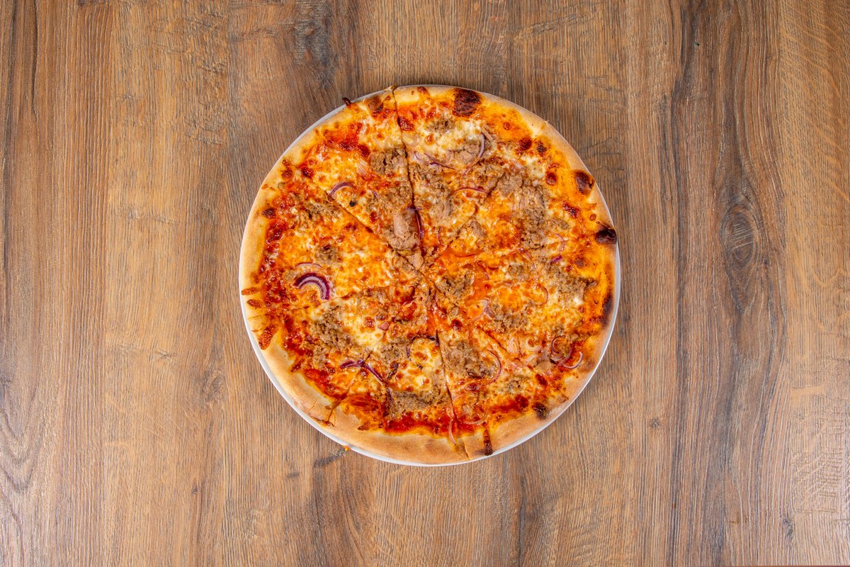 pomodoro, mozzarella, šunka, salám, kuřecí maso, cibule