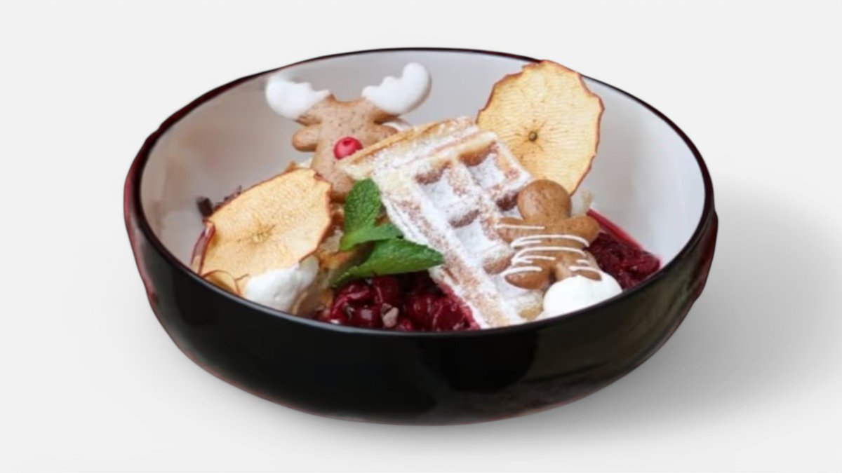 Opékaná brioška / matcha krém / skořicová omáčka / pražené ořechy / ovoce a: 1,3,7,8,12 *Foto pouze ilustrační