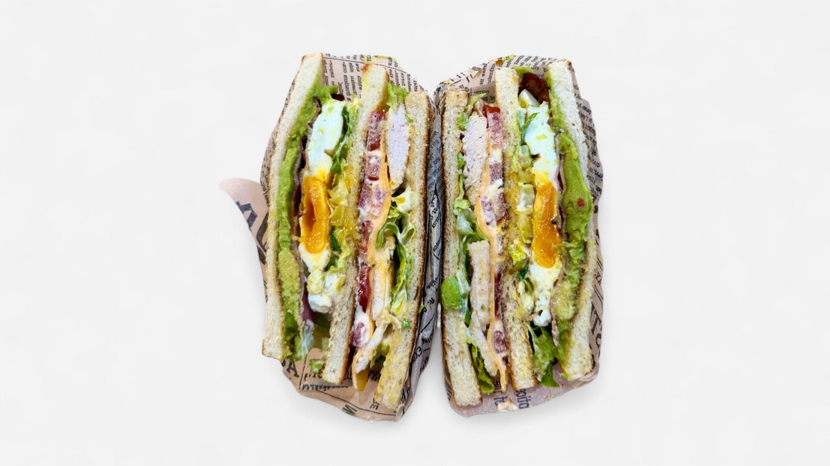 Máslový toast, pepřová mayo, sezónní salát, kuřecí prsíčko, cheddar, rajčata, volské oko, slanina, avokádo.