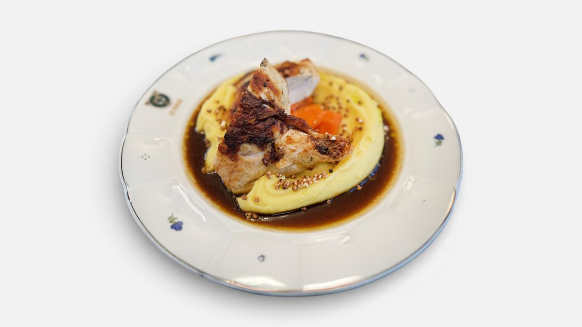 bramborová kaše, konfitovaná karotka, demi-glace