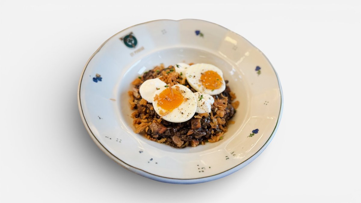 Ragú z čočky Beluga s kořenovou zeleninou,