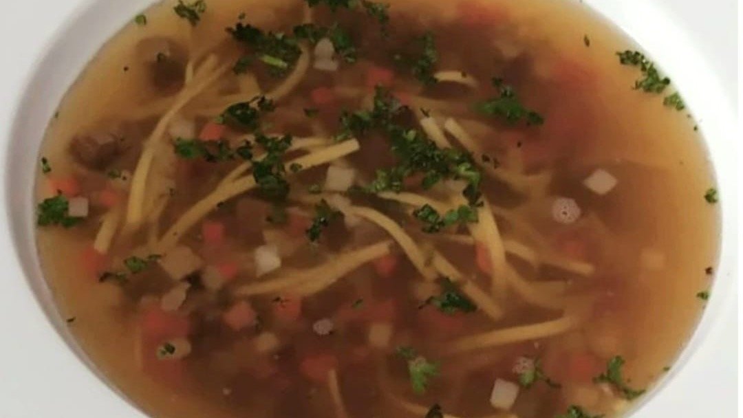 400ml Hovězí vývar s masem, domácími nudlemi a zeleninou