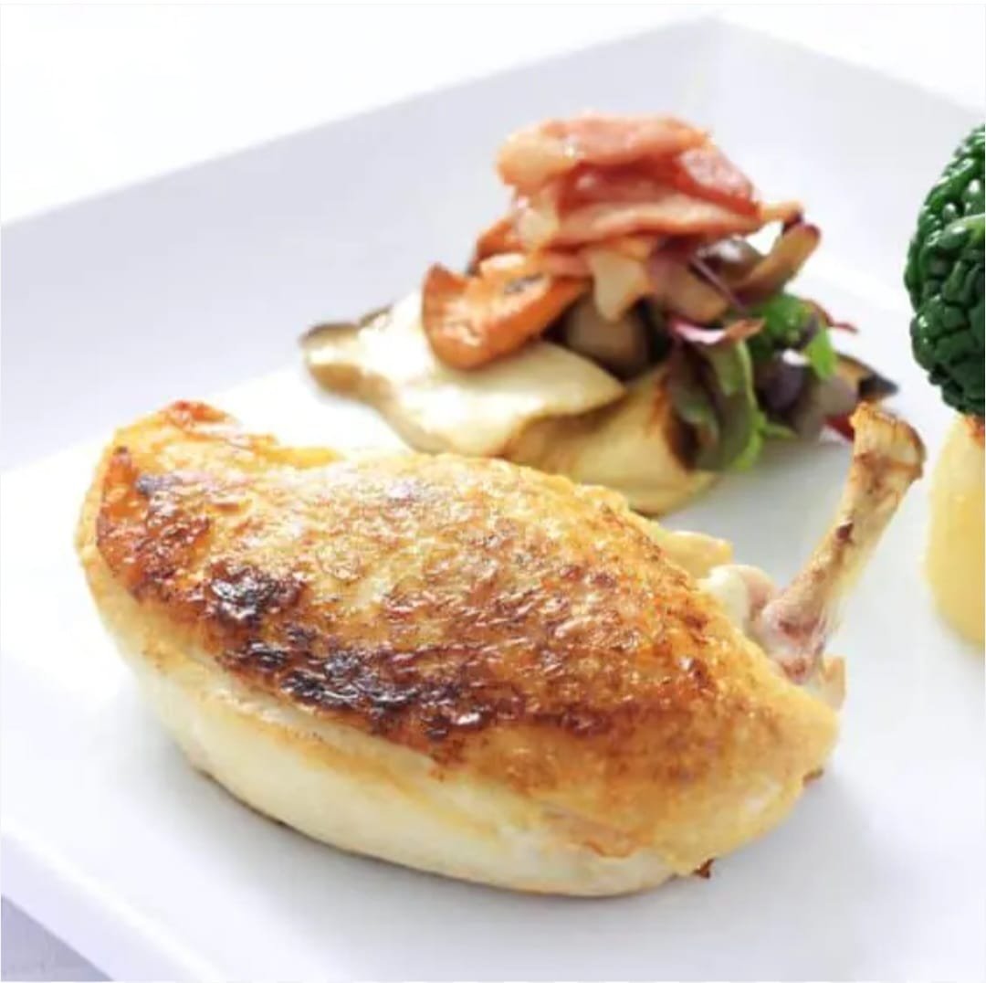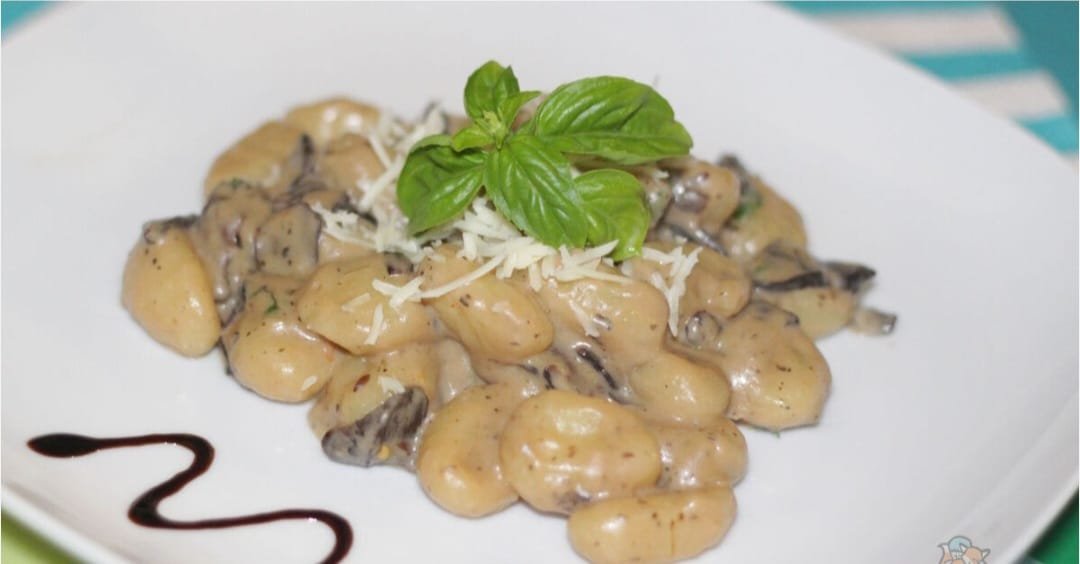 Homemade gnocchi, chicken meat, chanterelles mushrooms