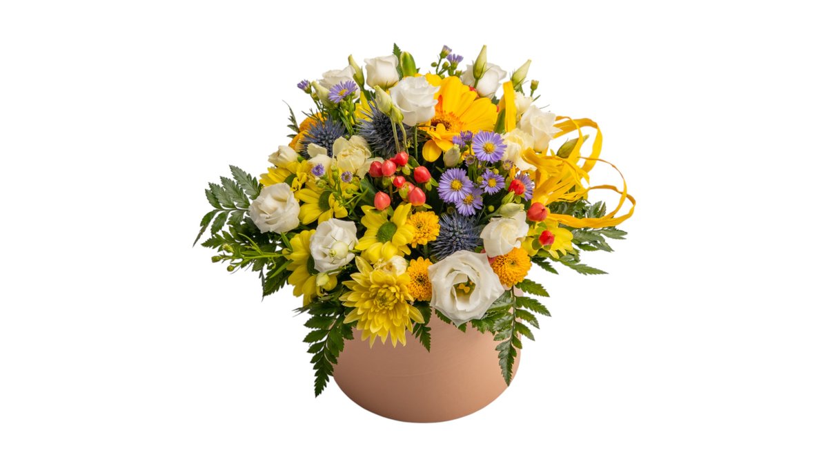 box v žluté barvě v průměru cca 30 cm květiny se mohou mírně lišit dle dostupností