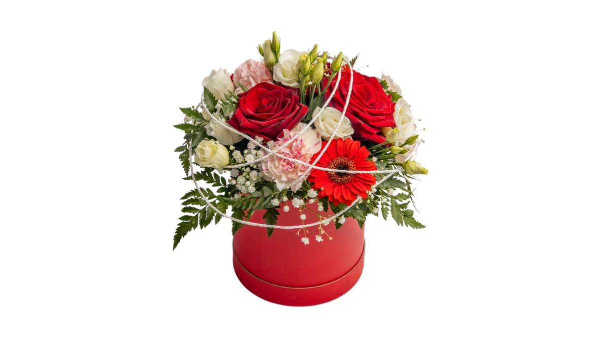 box v červené barvě v průměru cca 30 cm květiny se mohou mírně lišit dle dostupností