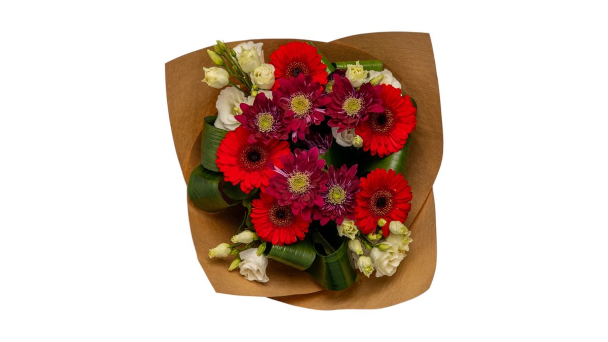 Kytice v červené barvě květiny se mohou mírně lišit dle dostupností s papírovou manžetou.