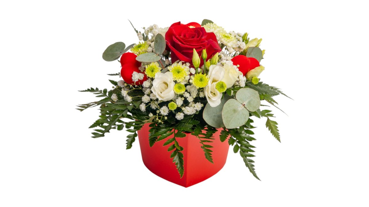 Květinovy box ve tvaru srdce s růží . průměr cca 25 cm
